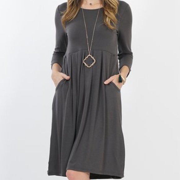 Dresses Grey 34 Sleeve Dress W Pockets Empire Waist Poshmark